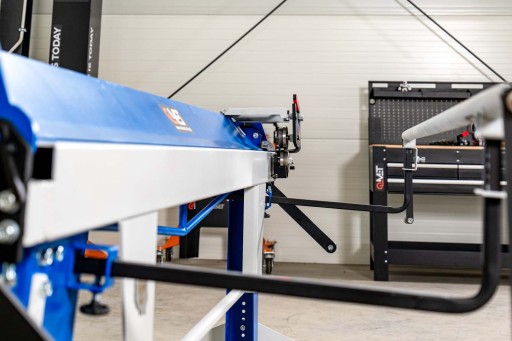 Cena obejmuje: zaginarka + rączki transportowe + stół roboczy szybkiego demontażu + zderzaki + kątomierz obustronny z blokadą kąta zaginania + siłowniki gazowe + nóż krążkowy!
