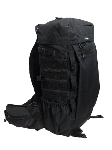 Z obu stron na bocznej części oraz na frontowej części przy dole plecak obszyty został taśmami systemu modularnego MOLLE umożliwiające przypinanie dodatkowych rzeczy.