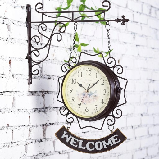 Dwustronny zegar ścienny okrągły wiszący zegar ścienny do kawy na werandzie w domu