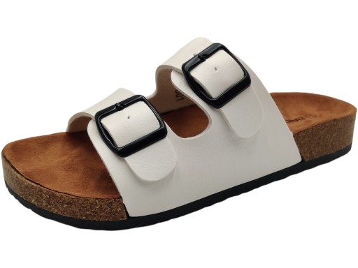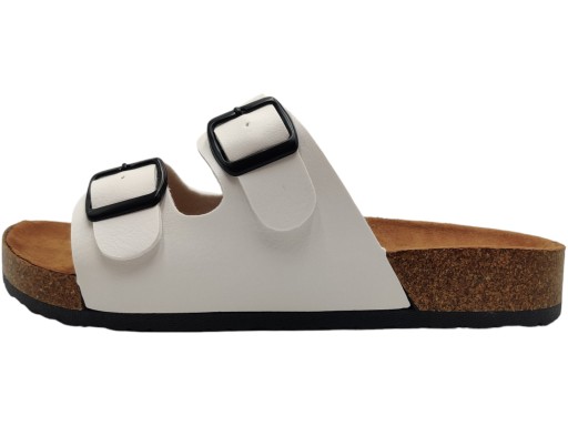 bIAŁE klapki z klamrą dla kobiet, wykonane z wysokiej jakości materiałów. Doskonale sprawdzą się na co dzień. Ich lekka konstrukcja gwarantuje komfort noszenia, a solidna podeszwa zapewnia stabilność i amortyzację dla stóp. Ten modny, klasyczny design doskonale współgra z różnymi stylizacjami, dodając im wyjątkowego uroku. Poza tym świetnie prezentują się na stopie!