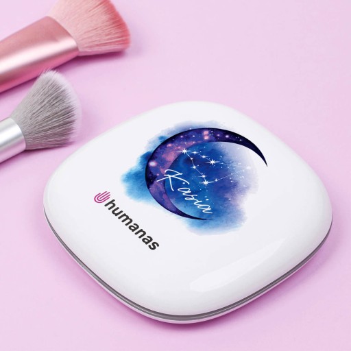 Jeśli Twoja przyjaciółka fascynuje się astrologią, zaskocz ją upominkiem, który ma w sobie odrobinę magii. Personalizowane lusterko kieszonkowe do makijażu z motywem astrologicznym to doskonały prezent dla zodiakary. Lusterko będzie doskonałym wyborem na prezent, który możesz podarować na urodziny lub inną osobistą okazję. To kompaktowe lusterko, wykonane z niezwykłą dbałością o szczegóły, jest zarówno stylowe, jak i funkcjonalne.