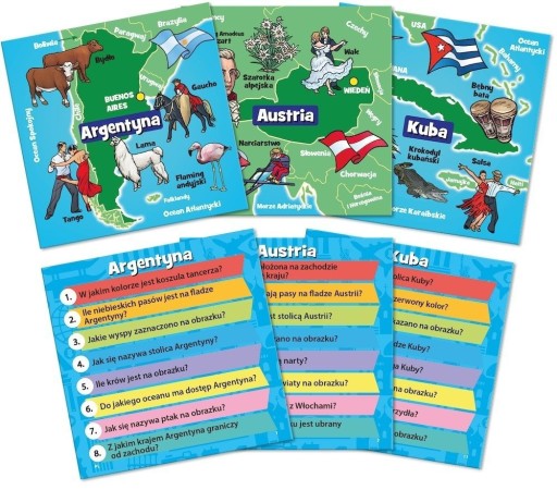Wspólna zabawa - wspólna nauka geografii!Flagi, mapy, stolice i symbole poszczególnych państw przestaną być zagadką dzięki BrainBox - Świat! Na 55 kartach znajdziesz informacje o najważniejszych krajach, a angażujący sposób rozgrywki sprawi, że Twoje dziecko bez wysiłku będzie poszerzało swoją wiedzę z zakresu geografii. Czym jest BrainBox?To seria wyjątkowych gier edukacyjnych, które będą wspierały rozwój Twoich dzieci lub podopiecznych na każdym etapie nauki. Wykorzystując dynamiczną i angażującą zabawę, gry z linii BrainBox pozwalają rozwijać wiedzę, a także wspierają trening pamięci i spostrzegawczości, czyli umiejętności kluczowych dla rozwoju. Każde pudełko to zestaw kart, które po jednej stronie mają obrazek (należy przyjrzeć mu się przez określony czas), a z drugiej zestaw pytań, sprawdzających nie tylko naszą pamięć, ale też wiedzę z zakresu danego przedmiotu.Na czym to polega? Weź kartę z pudełka i odwróć klepsydrę. Przyglądaj się obrazkowi na karcie tak długo, jak przesypuje się piasek. Możesz przekręcić klepsydrę jeszcze raz, jeśli potrzebujesz więcej czasu.Przekaż kartę innemu graczowi i rzuć kością. Liczba na kości wskazuje, na które pytanie musisz odpowiedzieć (na przykład gdy wyrzucisz 2, odpowiadasz na pytanie numer 2).Gracz, któremu została przekazana karta, czyta na głos pytanie, na które musisz udzielić odpowiedzi. Następnie sprawdza Twoją odpowiedź, patrząc na obrazek na drugiej stronie karty.Jeśli odpowiedź jest prawidłowa, zatrzymaj kartę. Jeśli jest błędna, odłóż kartę do pudełka. Teraz kolej na następnego gracza.Gracz, który zgromadzi najwięcej kart po upływie 10 minut, wygrywa!Dlaczego pokochasz tę grę?To połączenie doskonałej, dynamicznej zabawy z realnym rozwijaniem wiedzy z konkretnych dziedzin.Testy wykazały, że gry z serii BrainBox stanowią doskonałe rozszerzenie nauki przedszkolnej i szkolnej; nadają się do wykorzystania zarówno w szkole, jak i w domu.BrainBoxy są dostosowane do wspólnej zabawy dzieci i dorosłych, by była ona satysfakcjonująca dla obu stron.Gry powstają w etycznych warunkach, z materiałów pochodzących z recyklingu i zdatnych do ponownego przetworzenia.