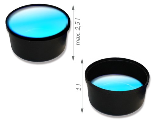 w której zmieścimy 2,5 litra wody.