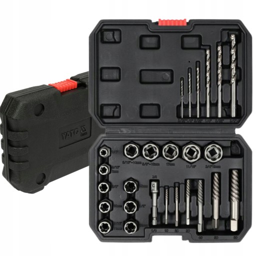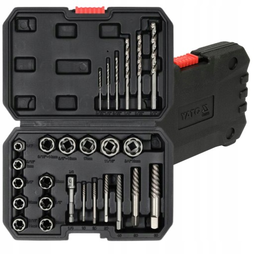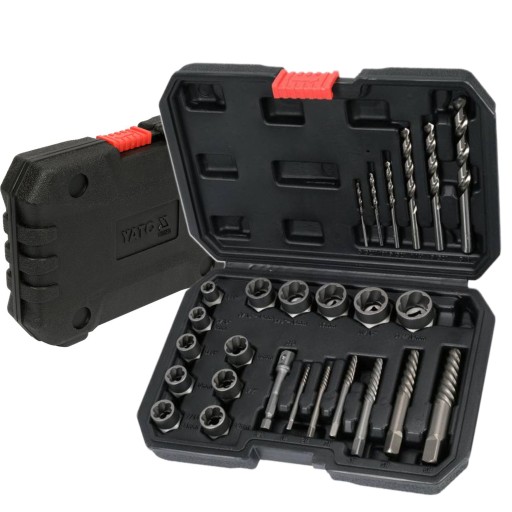 ЭКСТРАКТОРЫ YATO ДЛЯ ВИНТОВ, ШПИЛЬКОВ, ГАЙОК, СЛОМАННОЙ РЕЗЬБЫ, НАБОР ИЗ 26 ЭЛЕМЕНТОВ.