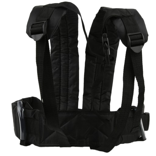 3. Dzieci zakładają paski naramienne, zapinają małą klamrę (aby zapobiec rozszerzaniu się pasków naramiennych), dorośli zawiązują gruby pas wokół talii, a następnie zapinają dużą klamrę.