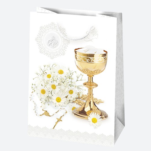Torba ozdobna Komunia Kielich nagietki 23x32x11cm