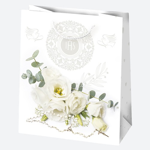 Torba ozdobna Komunia białe róże 19x23x10,5cm