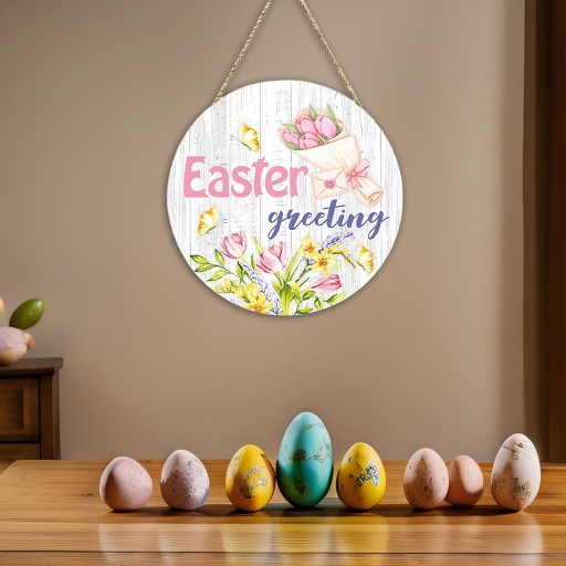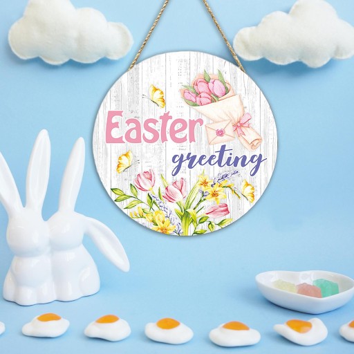 Wielkanocny znak na drzwi Wewnętrzny drewniany wiszący znak do salonu w stylu C