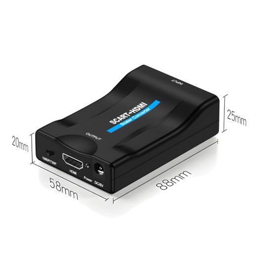 - Zastosowanie: Konwersja sygnału analogowego SCART na sygnał cyfrowy HDMI