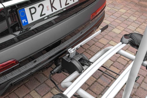 Pojemność bagażnika umożliwia łatwy transport nawet ciężkich rowerów górskich oraz rowerów elektrycznych. Na platformie możesz umieścić nawet trzy 15-kilogramowe rowery.