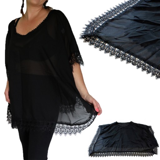 Tunika wykończona została modnymi koronkami w stylu boho, krój oversize zapewnia dopasowanie do każdej sylwetki oraz ukrywa ewentualne mankamenty sylwetki podkreślając przy tym wakacyjną opaleniznę.