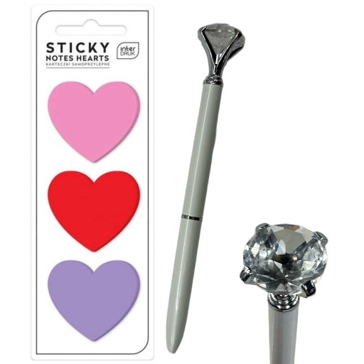 - W zestawie 120 szt karteczek samoprzylepnych oraz złoty długopis z niebieskim wkładem