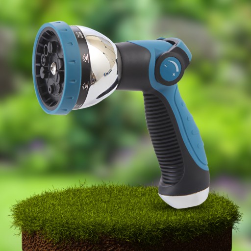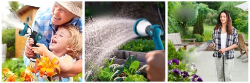 W komplecie znajduje się pistolet zraszający oferujący 10 różnych trybów, co umożliwia dostosowanie strumienia wody do konkretnych potrzeb – od delikatnego mgiełkowania po mocny strumień.