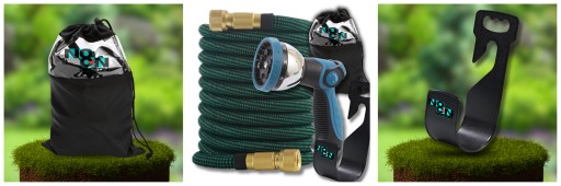ZESTAW OGRODOWY 3w1 - Wąż ogrodowy Nocton Flex - 30M + Wózek do 120M Węża + Uchwyt do mocowania