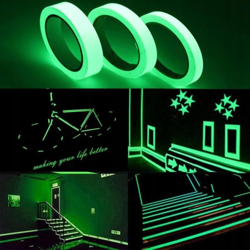 TAŚMA ŚWIECĄCA W CIEMNOŚCI FLUORESCENCYJNA ODBLASKOWA SAMOPRZYLEPNA 5m
