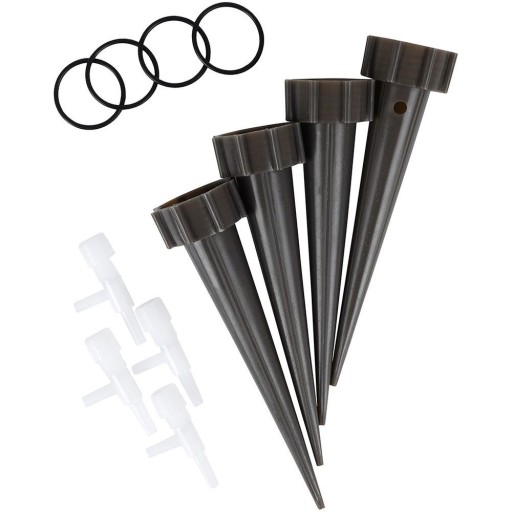 ✅ PRZYDATNY - Zestaw czterech sztuk nawadniaczy do podlewania roślin. Nawadniacz ma zawór kropelkowy i montujemy go na butelce. Każdy z nawadniaczy ma 13,5 cm długości.