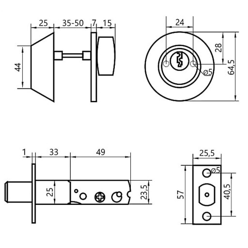 - pasuje do drzwi o grubości do 50 mm