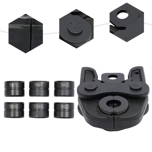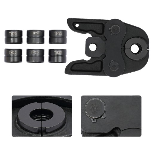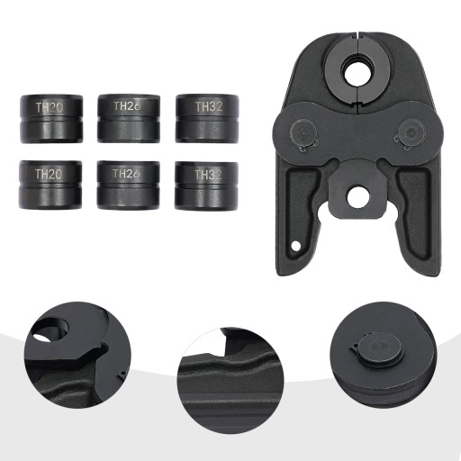 Wykonanie z wydajnością stali dociskowej ma dobre rozwiązanie, które zostało rozdzielone, dzięki czemu jest bardziej trwałe i może być użyte przez długi czas. Dostępność w 4 postaciach TH, szczęka zaciskowa może być używana w szerokim zakresie zastosowań. Szczęka zaciskowa nadaje się do podłączenia rur aluminiowo-plastikowych, rur PEX, rur PB z akcesoriami miedzianymi, złączami miedzianymi, tuleją ze stali nierdzewnej, tuleją miedzianą i tuleją aluminiową.