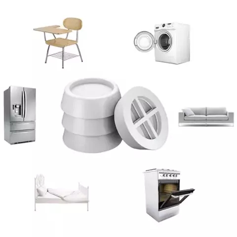 Podkładki antywibracyjne pod nóżki pralki oraz innych urządzeń AGD znacznie redukują wytwarzany przez urządzenia hałas i nieprzyjemne wibracje, które szkodzą zarówno użytkownikom jak i samemu sprzętowi. Uniemożliwiają ruch urządzenia, które mogłoby zarysować podłogę.