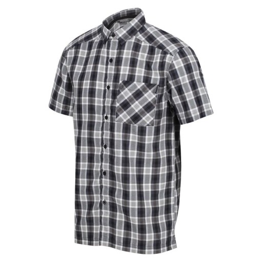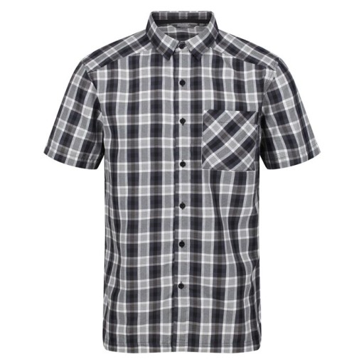 Koszula trekkingowa z krótkim rękawem Mindano VI marki Regatta, idealna na lato dla osób lubiących aktywny tryb życia. Wykonana z wytrzymałego materialu, zapewnia komfort i swobodę ruchu. Doskonale odprowadza wilgoć, szybko schnie i ma elegancką kieszeń na klatce piersiowej. Idealna na jednodniowe wypady na kemping lub weekendowe wycieczki.