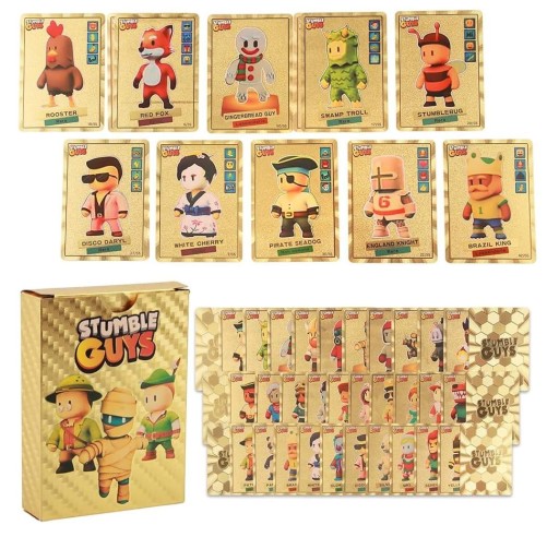 КАРТЫ STUMBLE GUYS GOLD 55 ШТ. ВОДОНЕПРОНИЦАЕМЫЕ ЗОЛОТЫЕ