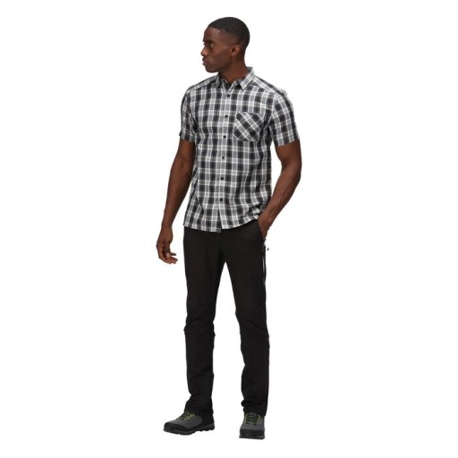 Koszula trekkingowa z krótkim rękawem Mindano VI marki Regatta, idealna na lato dla osób lubiących aktywny tryb życia. Wykonana z wytrzymałego materialu, zapewnia komfort i swobodę ruchu. Doskonale odprowadza wilgoć, szybko schnie i ma elegancką kieszeń na klatce piersiowej. Idealna na jednodniowe wypady na kemping lub weekendowe wycieczki.