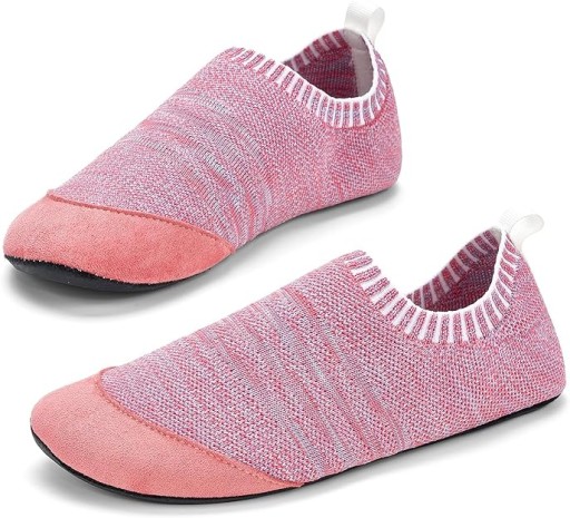 - kapcie są wyposażone w miękką, oddychającą wkładkę z gąbki, aby utrzymać stopy w chłodzie i zwiększyć komfort. Buty do chatki unisex są jak skarpety stoperowe.