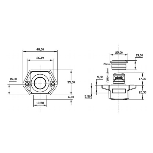 Średnica otworu tnącego: 20mm/0.79 cala.