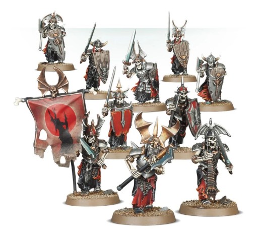 Armed and armoured with the kingdom’s finest equipment, the Grave Guard are the elite warriors of tomb and barrow. They carry cursed blades woven through with the magic of darkness and despair.