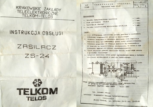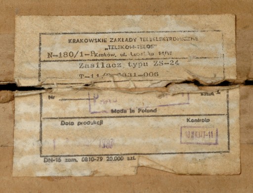 Polski zasilacz stabilizowany wyprodukowany przez Krakowskie Zakłady TELKOM - TELOS.