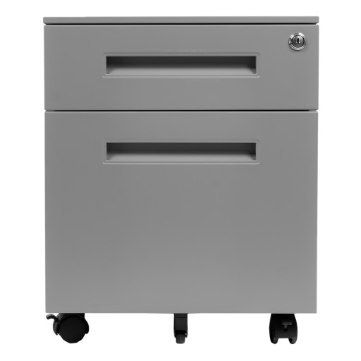Schludna, dobrze zorganizowana przestrzeń w biurze to absolutna konieczność. Mobilny kontenerek pod biurko to idealne rozwiązanie do przechowywania dokumentów i artykułów biurowych. Wszystko, co potrzebujesz, masz pod ręką. Idealnie nadaje się zarówno do domowego biura, jak i firmy. Szafka jest wykonana z najwyższej jakości stali malowanej proszkowo, co przekłada się na wyjątkową wytrzymałość i stabilność - rozwiązanie na lata. Prosty, nowoczesny design sprawia, że szafka doskonale pasuje do każdego wnętrza. Centralny zamek to gwarancja bezpieczeństwa. Przechowuj dokumenty i wartościowe przedmioty w jednej z dwóch zamkniętych szuflad. Dzięki zintegrowanym kółkom można ją w łatwy sposób przemieszczać. Szafka jest prawie gotowa do użycia, wystarczy, że zamonutujesz kółka (nie potrzebujesz do tego żadnych narzędzi).