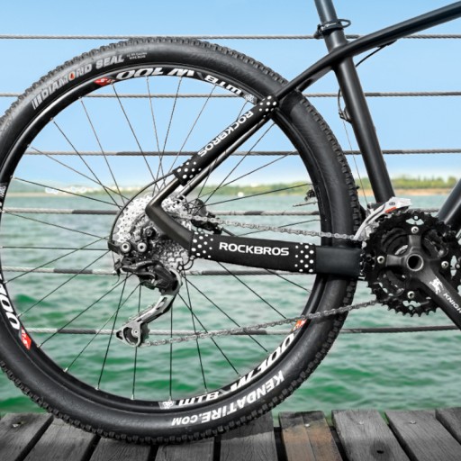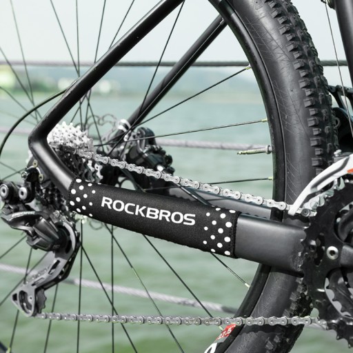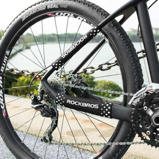 Neoprenowa osłona do ramy marki ROCKBROS skutecznie chroni lakier roweru przed uszkodzeniami uderzającego łańcucha i nie tylko.
