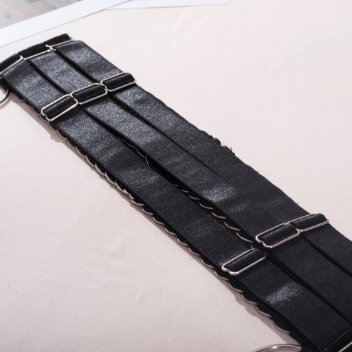 - Regulowane paski w biustonoszu, przy naszyjniku oraz przy harnessie na uda oraz na talię