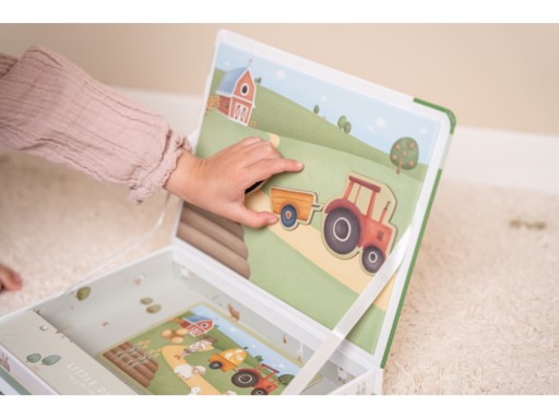 Zestaw składa się z 80 magnesów, 6 kart ze wskazówkami i pudełka z tablicą magnetyczną. Zabawa polega stworzeniu swojego własnego obrazka przedstawiającego życie na farmie z wykorzystaniem magnesów z motywem z kolekcji Little Farm. Możecie też korzystać z podpowiedzi umieszczonych na karatach. Znajdziecie tu również dwójkę ulubionych bohaterów - Rosę i Jima.