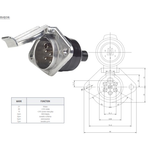 - ✔️ Złącze: gniazdo 7-pin typu S, złącze żeńskie bez bolca