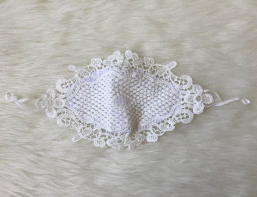 Maseczka ochronna, wielorazowego użytku wykonana z ozdobnej koronki.