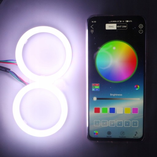 This RGB APP bluetooth angel eye is suitable for IOS & Android systems, and the control is simple and convenient.