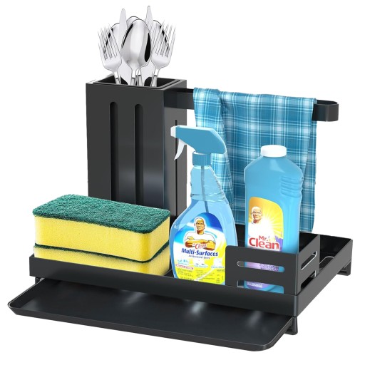 - Może organizować i przechowywać przedmioty, takie jak ściereczki do naczyń, detergenty, różne szczotki i gąbki,