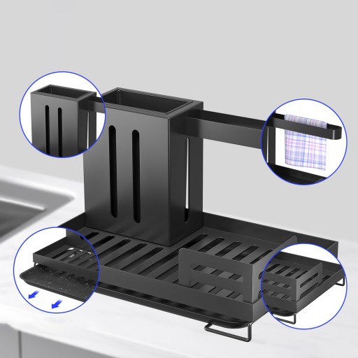 - Nasz stojak na zlew jest wyposażony w wyjmowaną tackę ociekową, która sprytnie rozwiązuje problem kapania wody z gąbki. Skutecznie pochłania kapiącą wodę, dzięki czemu półki i zlewy pozostają czyste i suche,