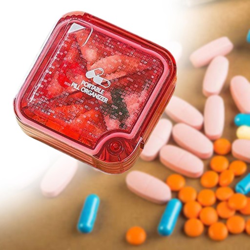 Podróżny organizer na pigułki z przegródką Mały pojemnik na pigułki do torebki-kieszonki, czerwony