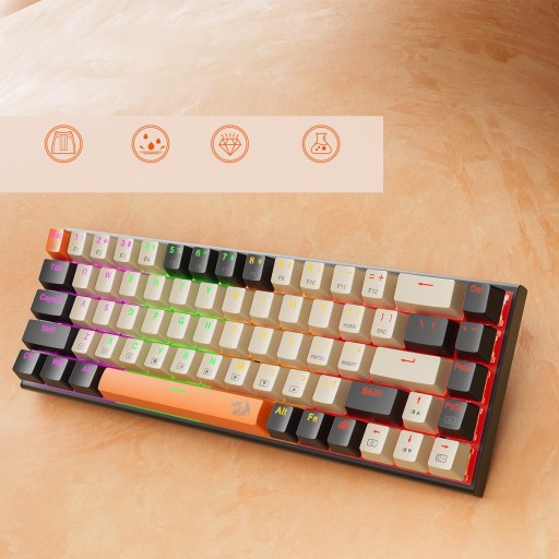 - Innowacyjny układ 68 klawiszy zmniejsza ilość zajmowanego miejsca, jednocześnie zapewniając funkcjonalność praktycznych klawiszy strzałek, multimedialnych i sterujących. Kompaktowa konstrukcja oszczędza więcej miejsca na ruchy myszą, idealna dla graczy i pracowników biurowych.