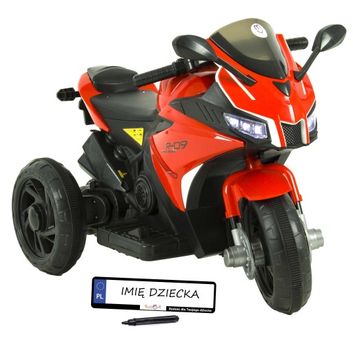 Kupując Motorek otrzymujesz GRATIS Radość dziecka, Zmywalną tablicę rejestracyjną, Marker i Bezpieczną zabawę.