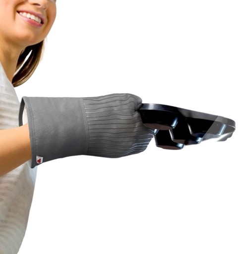 ✅ Pod szarą, elegancką powierzchnią kryje się wypełnienie z recyklingowanej bawełny, które zapewnia izolację i ochronę przed wysokimi temperaturami do 240 stopni Celsjusza. Podszewka z frotte gwarantuje, że każde użycie rękawic będzie nie tylko bezpieczne, ale również niezwykle komfortowe.