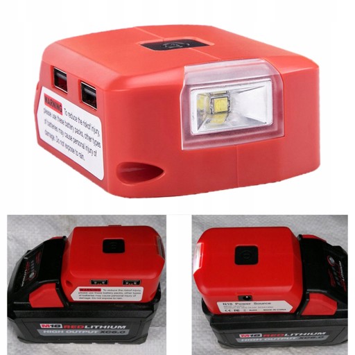 Zgodność - Adapter M18 ze światłem LED 140lm jest elektryczny z 18V M18 do akumulatora litowo-jonowego Dla 48-11-1840, 48-11-1850, 48-11-1815, 48-11-1820, 48-11-1822, 48-11-1860, 48-59-1850, 48-11-1880, 48 -11-1890,48-11-1828/49-24-0171,przekształcenie mechaniczne w mobilny system zasilania (nie jest do połączone)