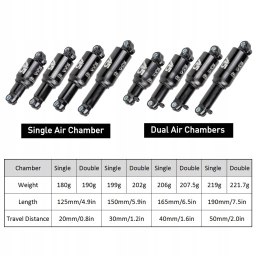 ☘Uwaga: ☘Przed zakupem zmierz rozmiar szoku w celu dopasowania. ☘Dane techniczne: ☘Materiał: stop aluminium ☘Kolor: czarny ☘Długość: 125mm/150mm/165mm/190mm (opcjonalnie) ☘Komora: pojedyncza/podwójna (opcjonalnie) ☘Lista pakietów: ☘1 * amortyzator ☘2 * Tuleje ☘4 * Śruby