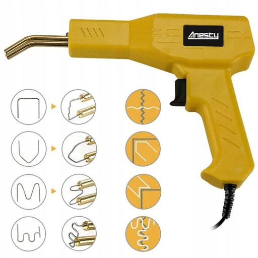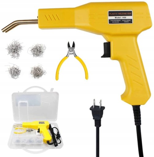 Zgrzewarka do tworzyw sztucznych Zgrzewarka do naprawy pcv. Funkcja: Silny na wstrząsy i skręcanie po naprawie. Zszywki ze stali nierdzewnej nie rdzewieją. Falista konstrukcja zszywek dla maksymalnego obciążenia. Szybka i łatwa obsługa. Szkolenie nie jest wymagane. Naucz się używać w kilka sekund. Ergonomiczny, dopasowany do dłoni. Szybkie i łatwe spawanie zszywkowe w tworzywach sztucznych. Świetny sposób na naprawę większości nowoczesnych produktów z tworzyw sztucznych. Â