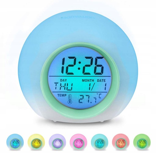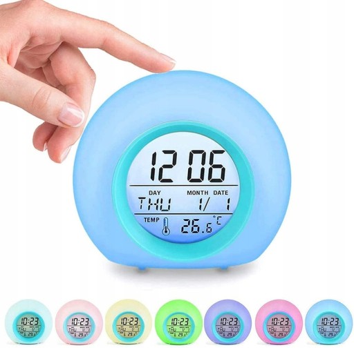 Cyfrowy budzik jest zasilany 3 bateriami AAA (brak w zestawie) z funkcją uśpienia, czujnikiem dotykowym, zmianą koloru, dekoracją pokoju, świetnym prezentem dla dzieci.