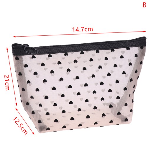 Mesh kosmetyczne torebki na makijaż pojemnik do przechowywania śliczne przezroczysty zamek błyskawiczny czarne przezroczyste nadruk serce piórnik na ołówki i pióra etui wygodne przenoszenie Cechy:1. 100% nowy i wysoka jakość.2. Zagęszczony siatka nylonowa. Ostra i stylowa, flokująca siatka.3. Okrągły suwak, okrągły suwak jest łatwy do potrząsania rękami, a zamek jest gładki i nie utknie.4. Przechowywanie wielofunkcyjne, oddychający i nieszczelny materiał siatka nylonowa, można prać i używać wielokrotnie, odporny na zużycie i mocny, można przechowywać codziennie produkty do pielęgnacji skóry. Kosmetyki, przybory toaletowe.5. Jeśli masz jakiś problem, suj się .Specyfikacja:Materiał: NylonRozmiar: jak pokazano (1 cal = 2.54cm)Kolor: jak pokazano na rysunkuPakiet zawiera:1Pc torebki na makijaż.
