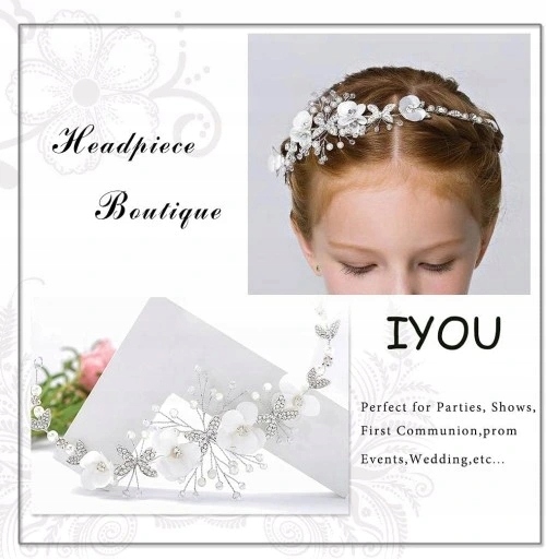 Delikatna opaska na kształt dziewczynki z kwiatami wykonana jest z opłaty jakości koralików, stopu i kryształu górskiego na pierwszą komunię i wesele.