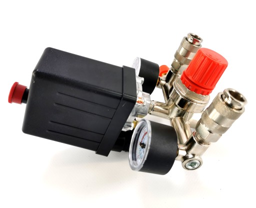 Wysokiej jakości wyłącznik ciśnieniowy (presostat) z kolektorem, dwoma szybkozłączkami i manometrami przeznaczony do kompresorów ciśnieniowych na 230V. Presostat wykorzystywany jest głównie w kompresorach o pojemności 24l, 50l, 60l, 100l, 150l